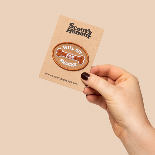 Scout's Honour - Will Sit For Snacks iron-on patch for dogs