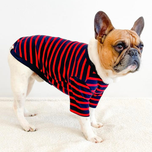 French Stripe Dog T-shirts - Navy & Red