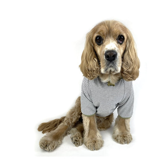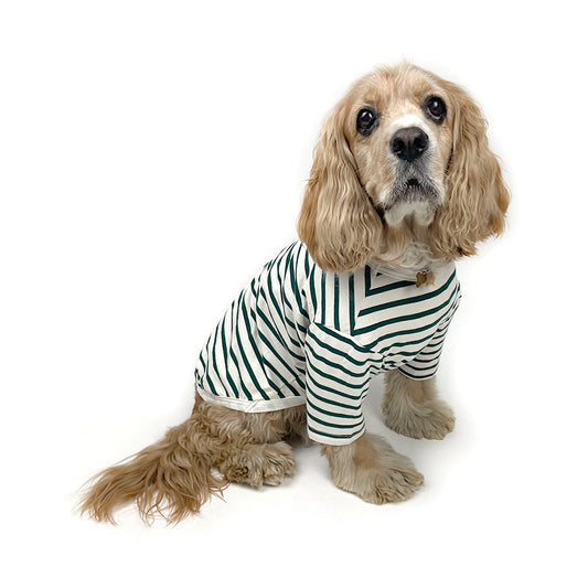 French Stripe Dog T-shirts - Cream & Pine