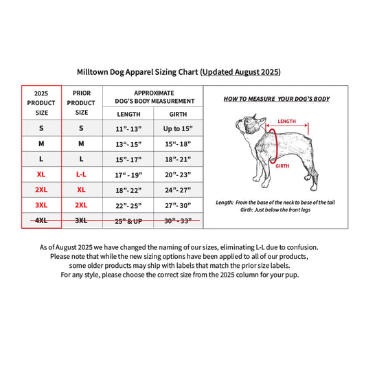 Designed for every dog—from 10 lbs Chihuahuas to 55 lbs Pitbulls—our apparel is crafted in small batches with an unwavering focus on detail, meeting the highest Japanese standards of quality. Check out our sizing reference by breed for more details.
