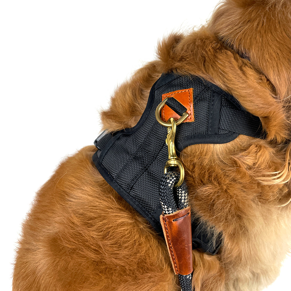Milltown's adjustable harness offers outstanding comfort and safety for your pup. Featuring easy to adjust straps with secure buckles for the perfect fit and multiple leash attachment points, it keeps your dog securely leashed in all weather and conditions. With classic mountain style, a leather tab, and brass D-rings and nylon straps, it's perfect for any outdoor adventures!