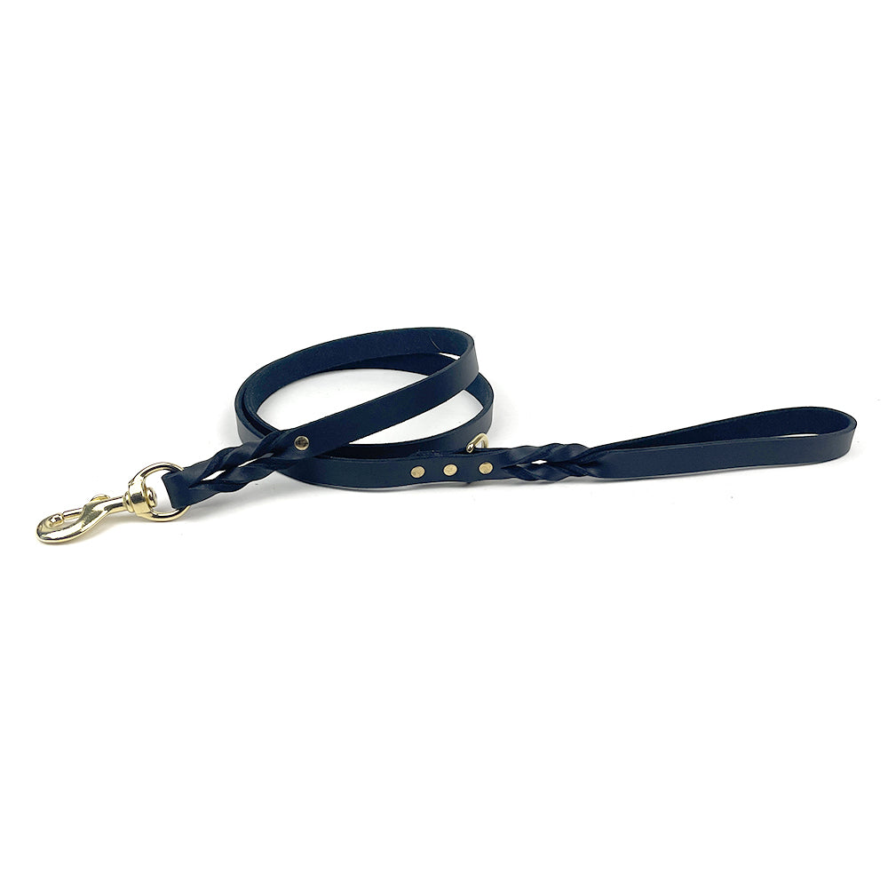 Made from premium bridle leather, the Auburn Leather Leash is 5 feet long, providing a comfortable and durable option for daily walks and training. It softens beautifully over time while retaining its strength. Hand-braided at both the snap and handle ends, it features a solid brass snap, rivets, and a D-ring at the handle for attaching a waste bag dispenser or treat case.
