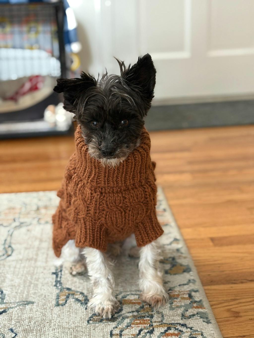 Jessica How adorable is this cable knit sweater! It's chunky and oh so soft! My dog looks cute in it and it keeps him warm in the winter months. LOVE it!!