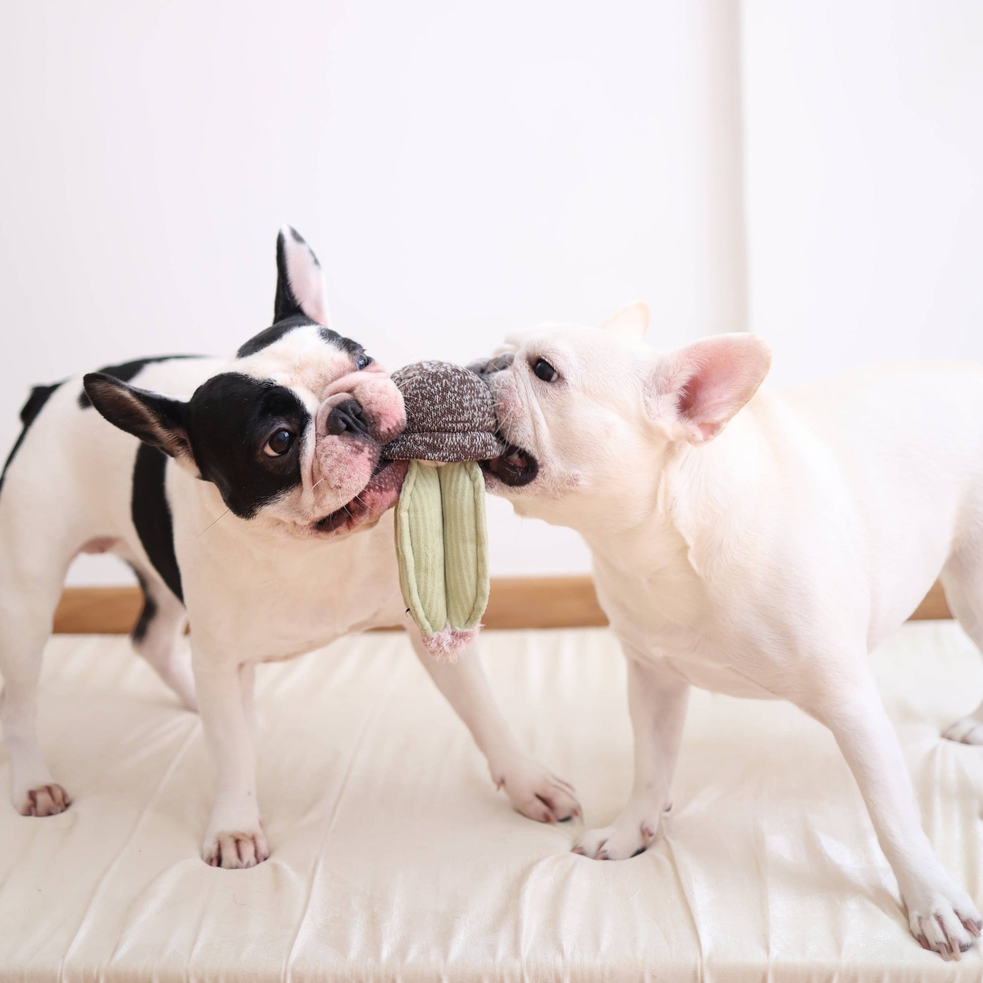 This snuffle CACTUS allow you to hide treats in between the 4 slots and the bottle knitted pot is filled with squeakers!