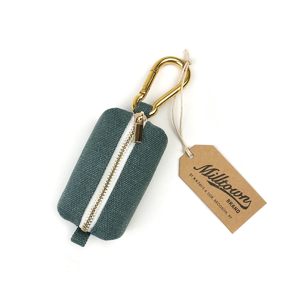 Made from high quality pigment washed canvas and featuring contrasting striped lining, these cases are designed to conveniently hold a roll of dog waste bags. Featuring a solid brass carabiner to clip to leash, belt etc., this dispenser fits rolls of bags up to 3" wide so it's easy to find refills, and ships with one complimentary roll of bags.