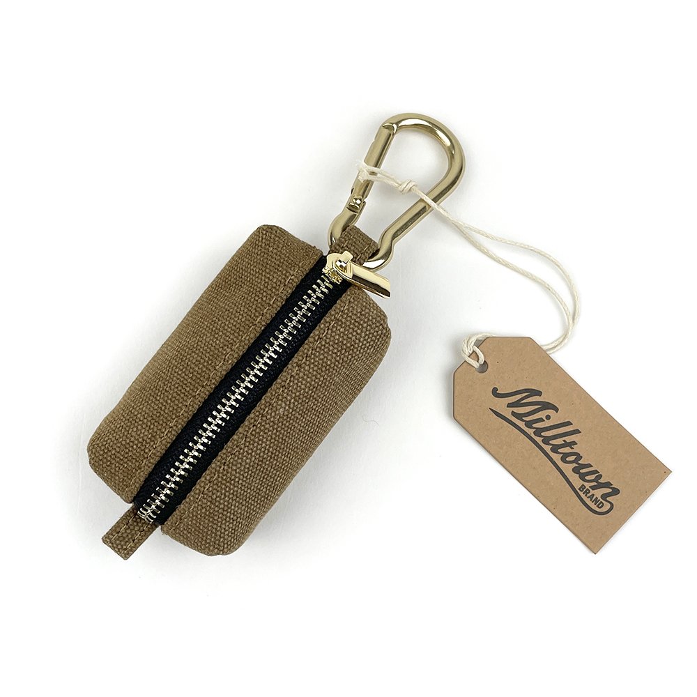 Made from high quality pigment washed canvas and featuring contrasting striped lining, these cases are designed to conveniently hold a roll of dog waste bags. Featuring a solid brass carabiner to clip to leash, belt etc., this dispenser fits rolls of bags up to 3" wide so it's easy to find refills, and ships with one complimentary roll of bags.