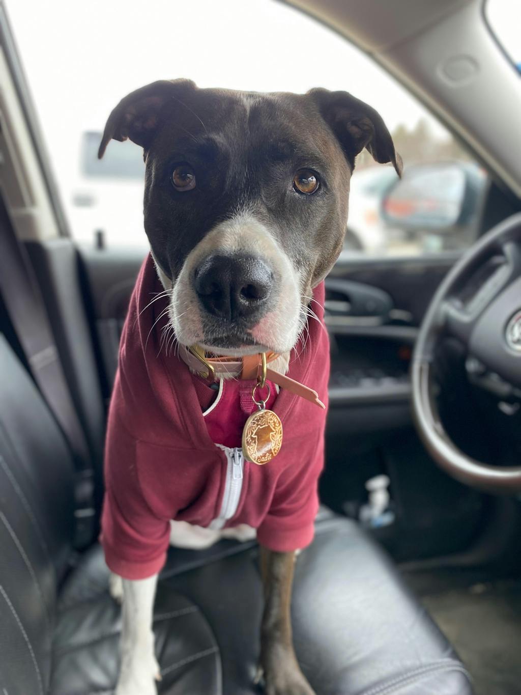 the hoodie is great, the material is tough, so I do not have to worry about it falling apart. the only compliant that is tight around the front shoulder. My pittie is huge in the front but not long, so stuck between certain sizes. I could have bought the next size up.