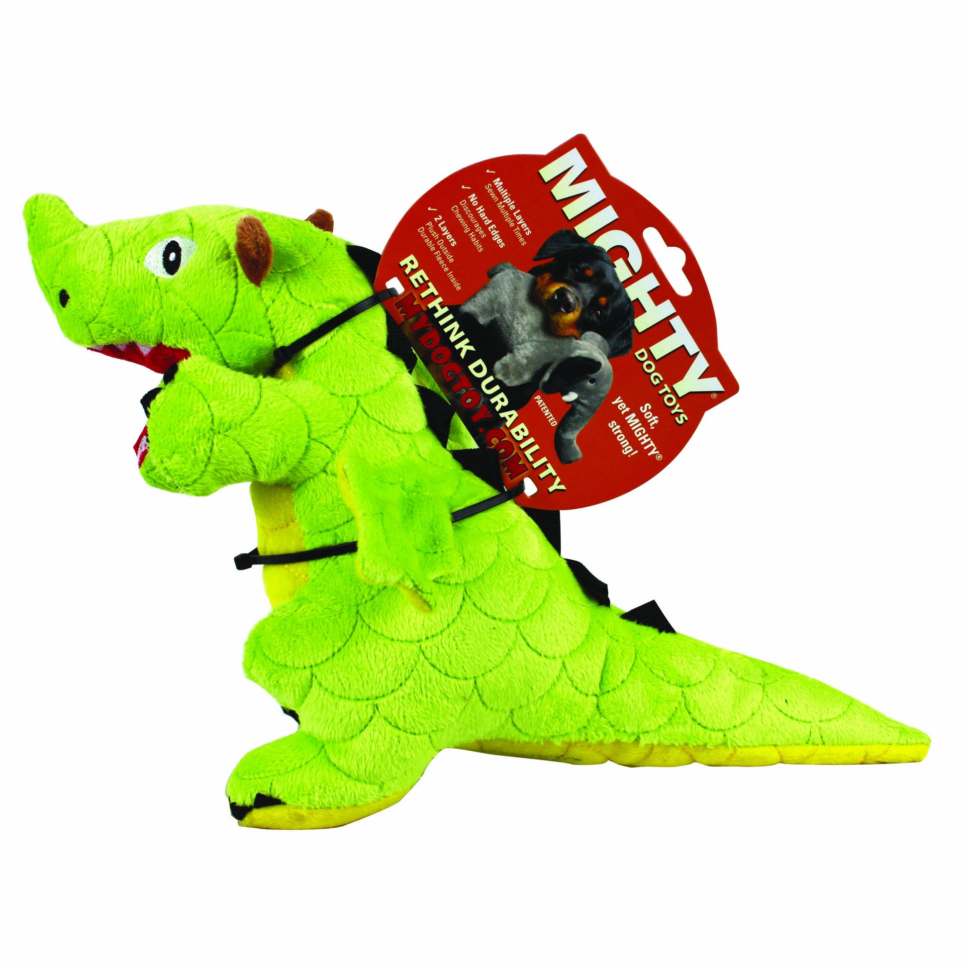 Mighty Dragon - Green, Plush, Squeaky Dog Toy