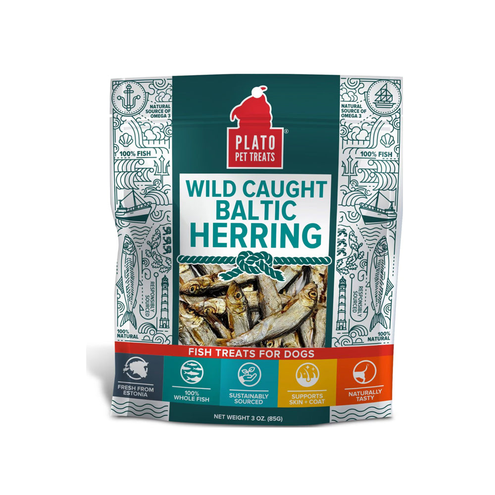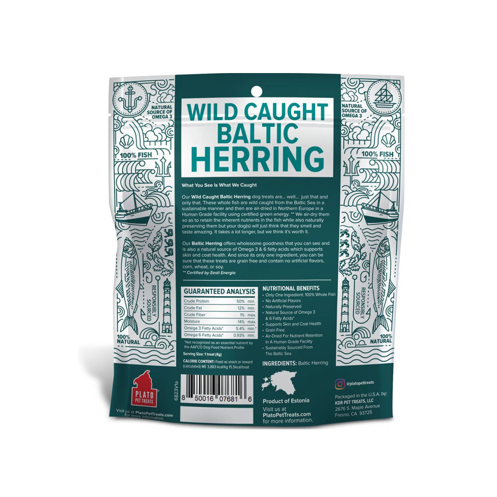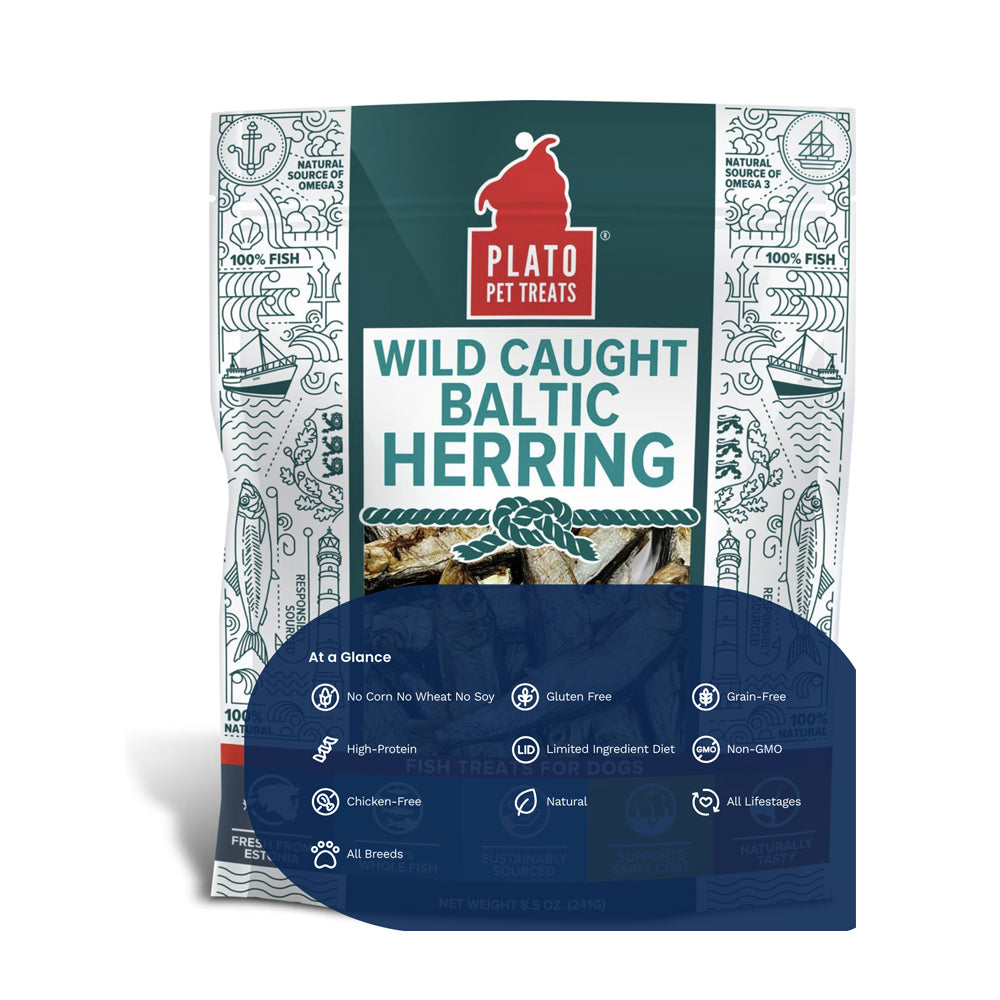 Take so-fish-tication to a whole new level with Plato Baltic Herring Dog and Cat Treats! These paw-fectly purr-fect healthy snacks are made with only one ingredient—100% whole fish. They’re nutritious, contain no artificial flavors and are naturally preserved. You’ll love that these air-dried, tasty fish treats are a wholesome source of omega-3 and omega-6 fatty acids that support your pet’s skin and coat health. Your fur-iends will love you for reeling in some naturally healthy fish treats!