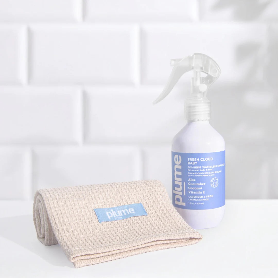Plume Care’s Fresh Cloud Baby is a no-rinse, waterless shampoo crafted with nature’s finest ingredients, known for their natural properties to clean & soothe the skin and coat. Spray this on your fur baby's whole body and coat to keep them clean and fresh longer, in between baths. Suited for all skin types, sensitive skin included.