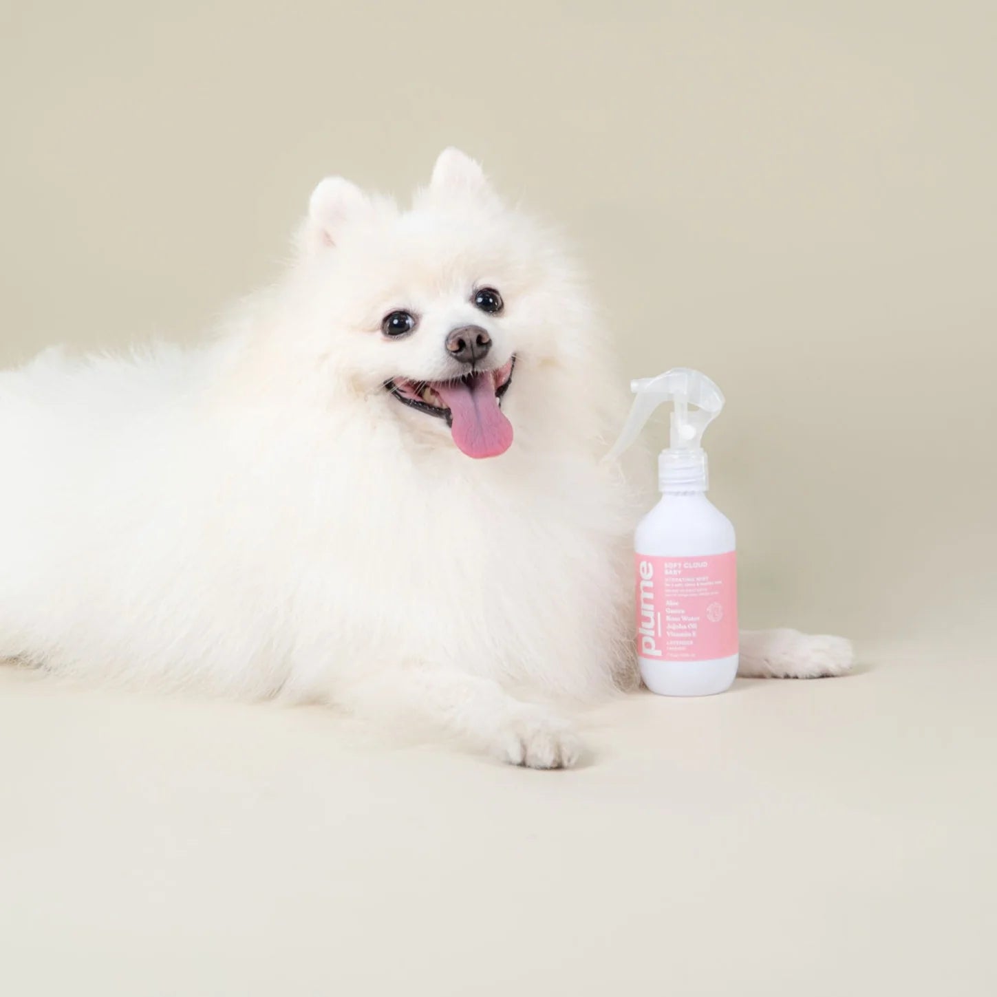 Plume Care’s Soft Cloud Baby is a nourishing and untangling dog hydrating mist crafted with nature’s finest ingredients, known for their natural properties to soothe, hydrate & nourish the skin and coat. Promoting a healthy coat while also protecting it with a mix of Guava extract, Jojoba Oil & Vitamin E. For best results, use our Fur Baby Dog Shampoo before using this product. Suited for all skin types, sensitive skin included.