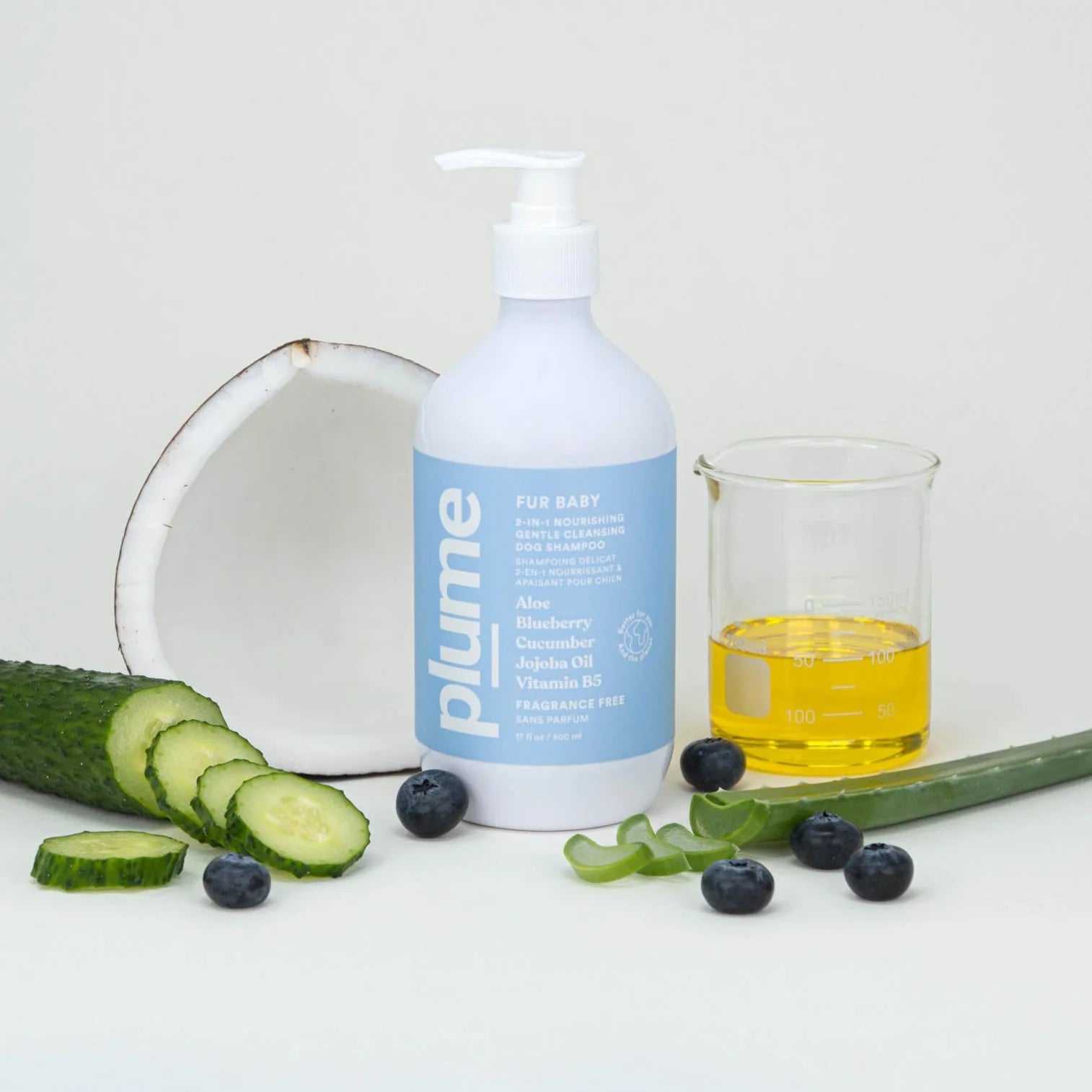 Plume Care’s Fur Baby is a 2-in-1 nourishing gentle cleansing dog shampoo crafted with nature’s finest ingredients, known for their natural properties to soothe, nourish & deeply-cleanse the skin and coat. Promoting a healthy coat while also protecting it with a mix of Blueberry extract & Vitamin B5. Suited for all skin types, sensitive skin included.