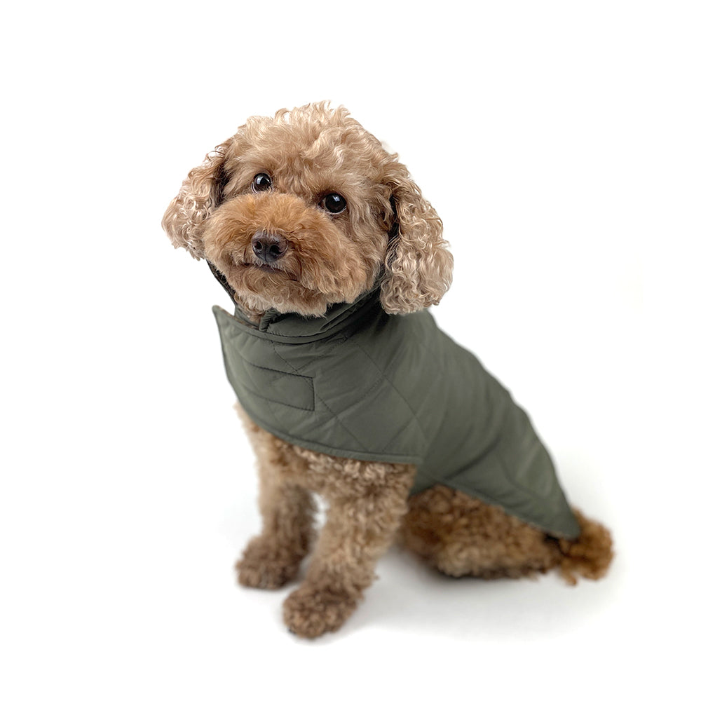Dog Reversible Poly Wool/Quilted Winter Coat - Army Green