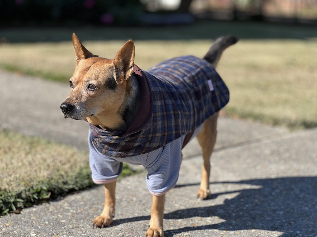 My baby is an outside dog; as she gets older, the potty break gets shorter. The velcro and design makes it easy on/off when she needs to get out several times a day in winter. The stand collar also shields the wind and keeps her warm. The wool plaid pattern is so classic and stylish.