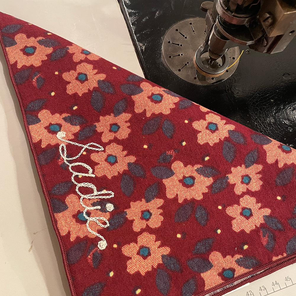 Every chain-stitch monogram is truly one of a kind, and brings a special warmth and personal touch to these products. Send us an Instagram DM if you want a video feature while Mariko is making your bandana!
