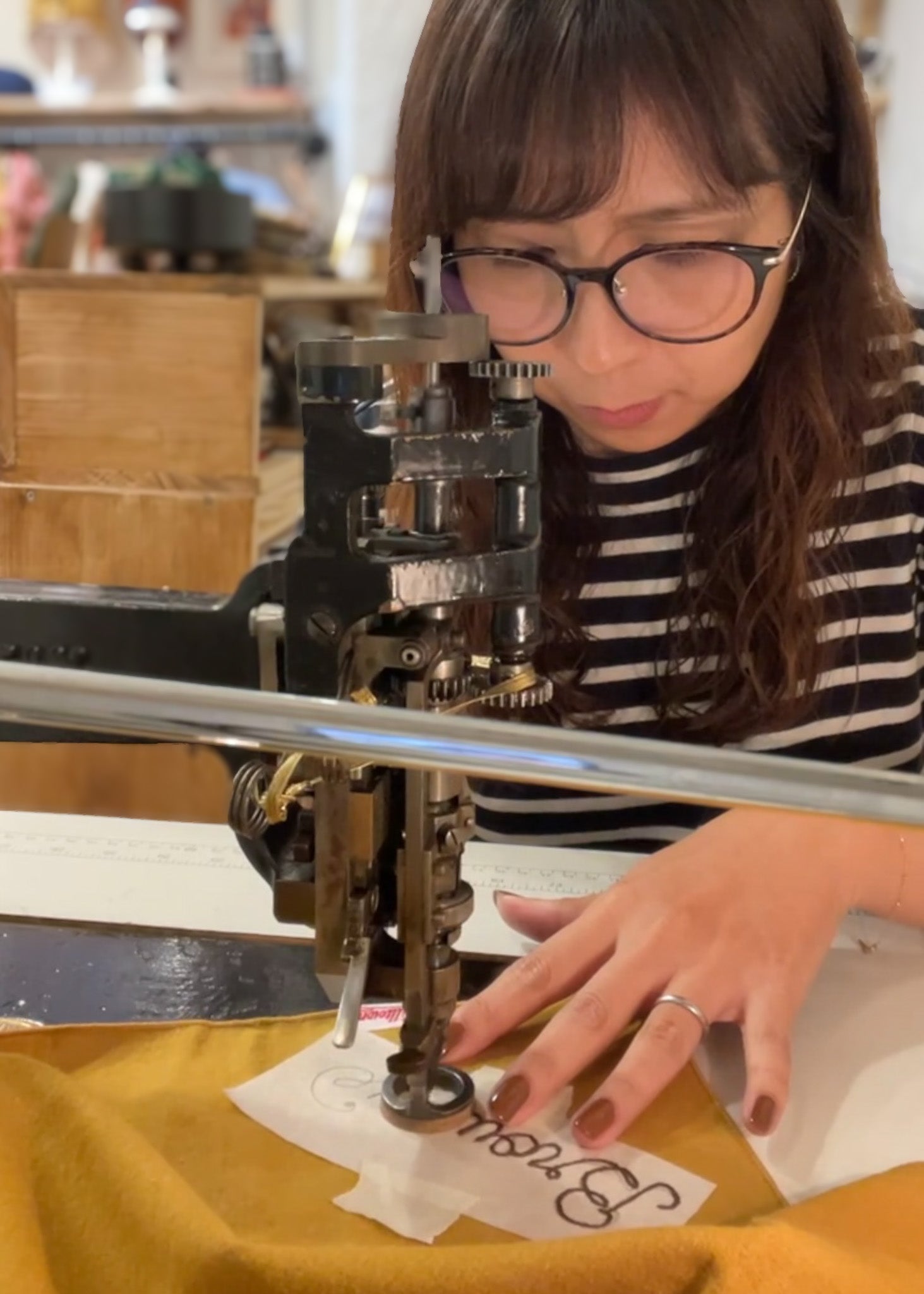 Every chain-stitch monogram is truly one of a kind, and brings a special warmth and personal touch to these products. Send us an Instagram DM if you want a video feature while Mariko is making your bandana!