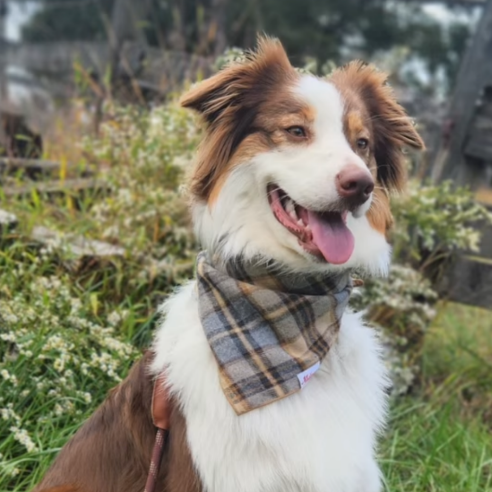Tomoe Harrison Square Dog Bandana - Wheat Field Plaid