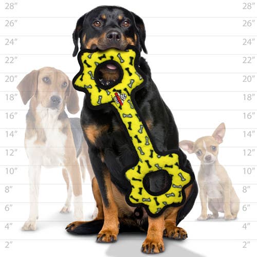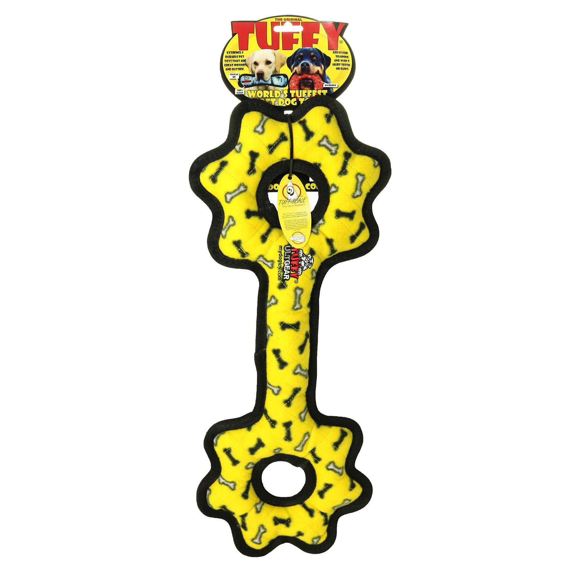 Tuffy Ultimate Tug-O-Gear - Yellow Bone, Squeaky Dog Toy
